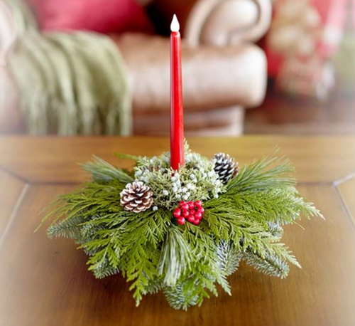 Fresh Greens Centerpiece with LED Candle (Shipped anywhere in US)